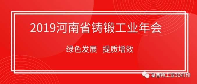 4月27日-29日“綠色發(fā)展 提質(zhì)增效”2019河南省鑄鍛工業(yè)年會(huì)在安陽(yáng)市舉行 本屆年會(huì)以促進(jìn)行業(yè)整合與提升、智能制造、綠色發(fā)展、提質(zhì)增效為目的。洛陽(yáng)易普特智能科技有限公司參加本屆年會(huì),與業(yè)界同仁共同分析形勢(shì)、解讀政策、分享經(jīng)驗(yàn),推廣工業(yè)3D打印技術(shù),探討河南鑄鍛行業(yè)持續(xù)健康發(fā)展之路?! ?019年是鑄鍛造行業(yè)全面推進(jìn)轉(zhuǎn)型升級(jí)的攻堅(jiān)克難之年,也是全面落實(shí)《中國(guó)制造2025》的關(guān)鍵時(shí)期。經(jīng)濟(jì)環(huán)境有望...